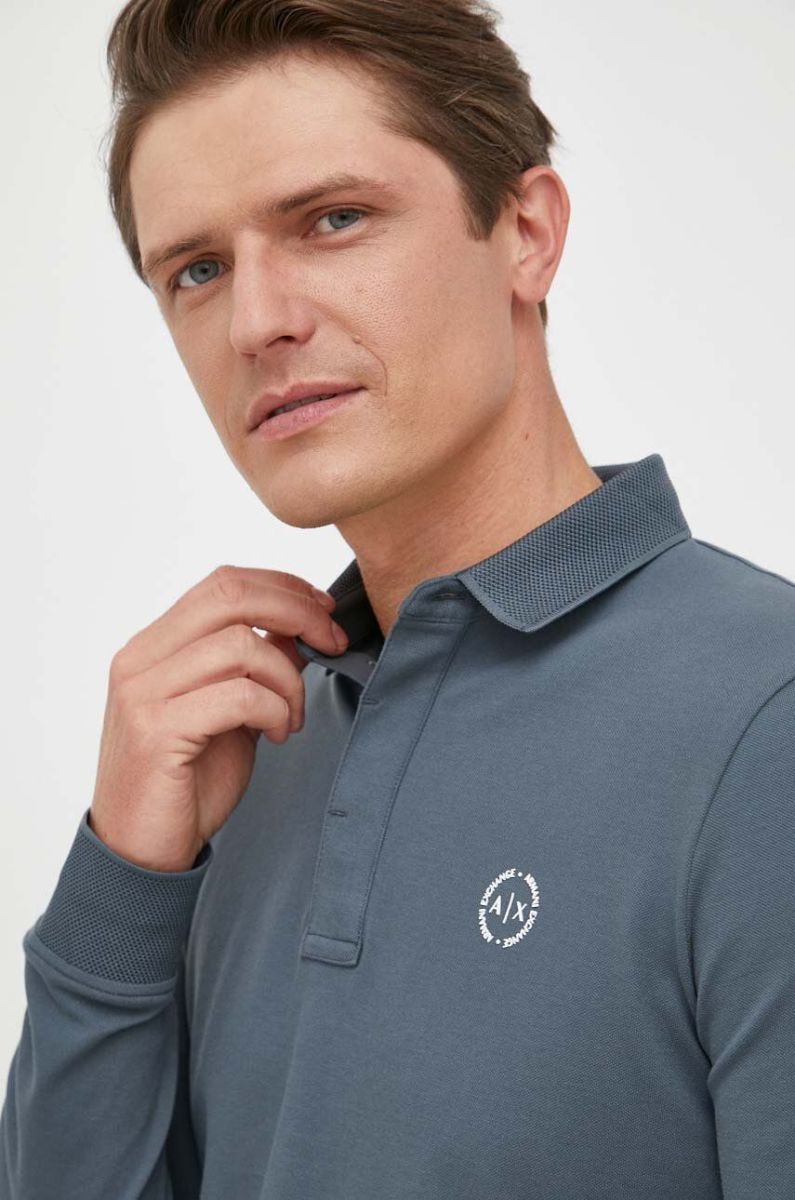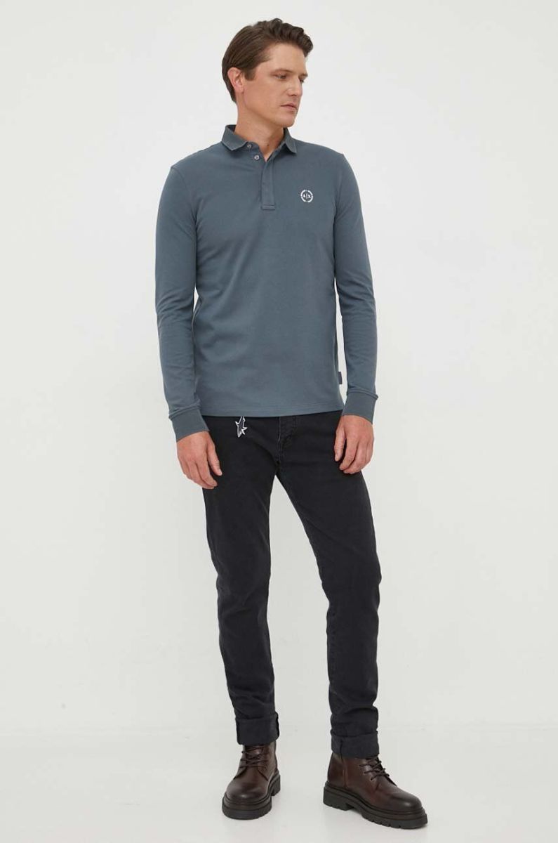 Лонгслів Armani Exchange чоловічий колір бірюзовий однотонний