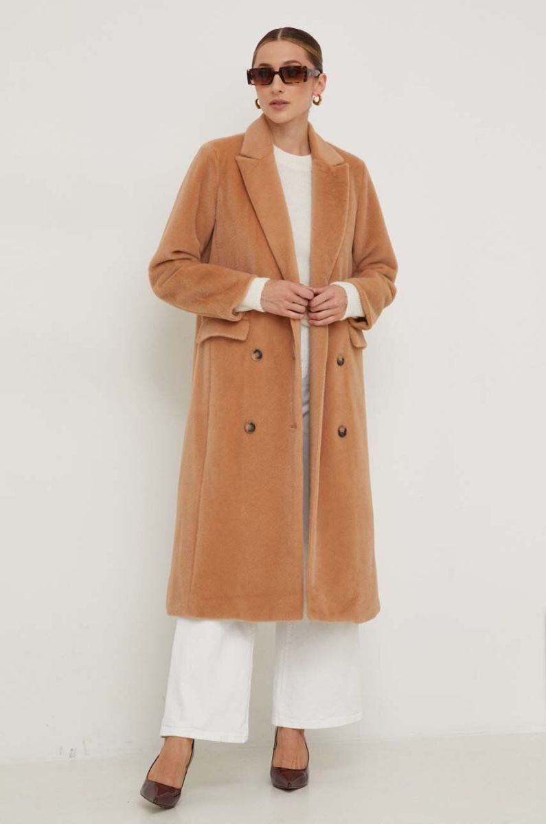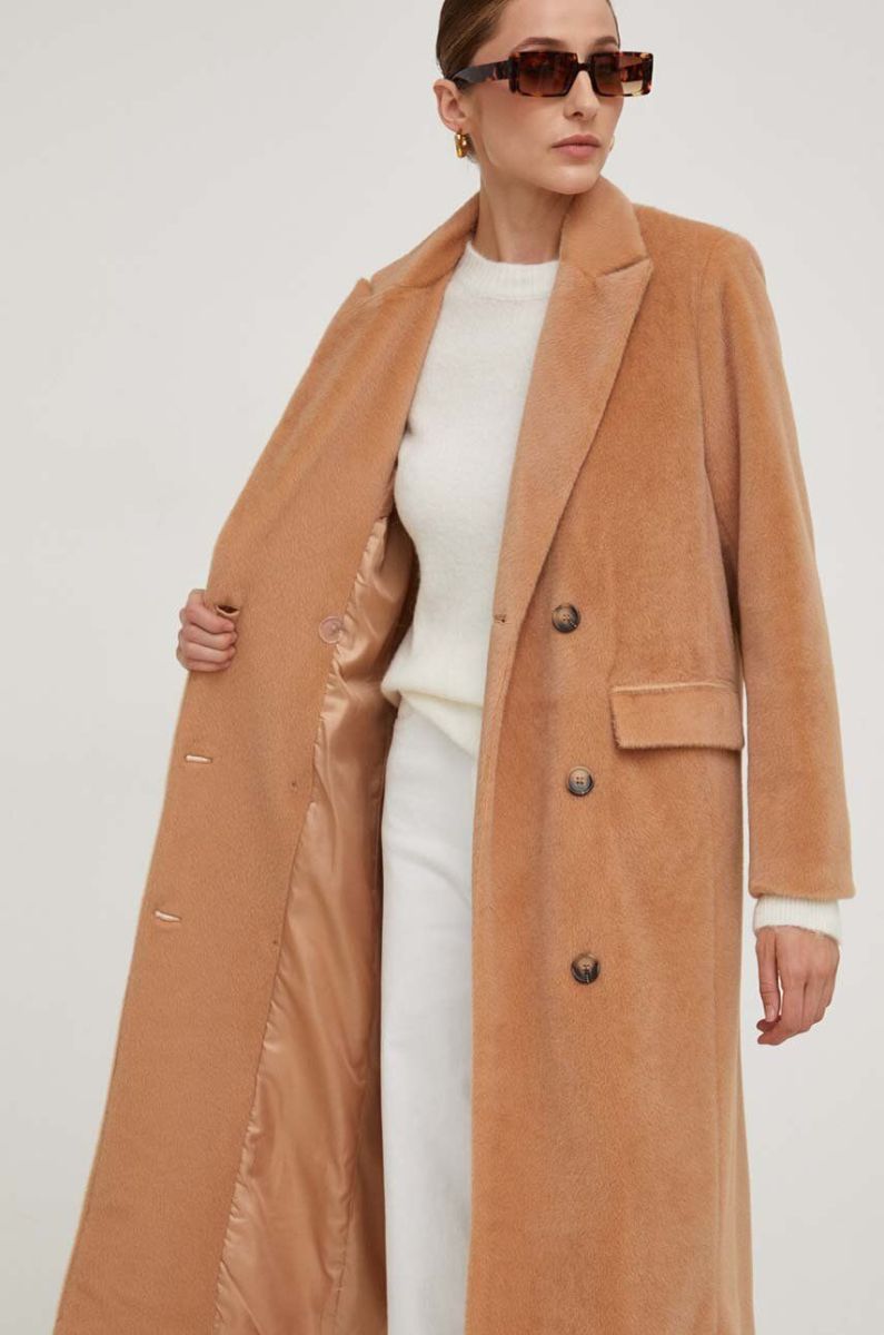 Пальто Answear Lab жіночий колір бежевий перехідний двобортний (3593998)