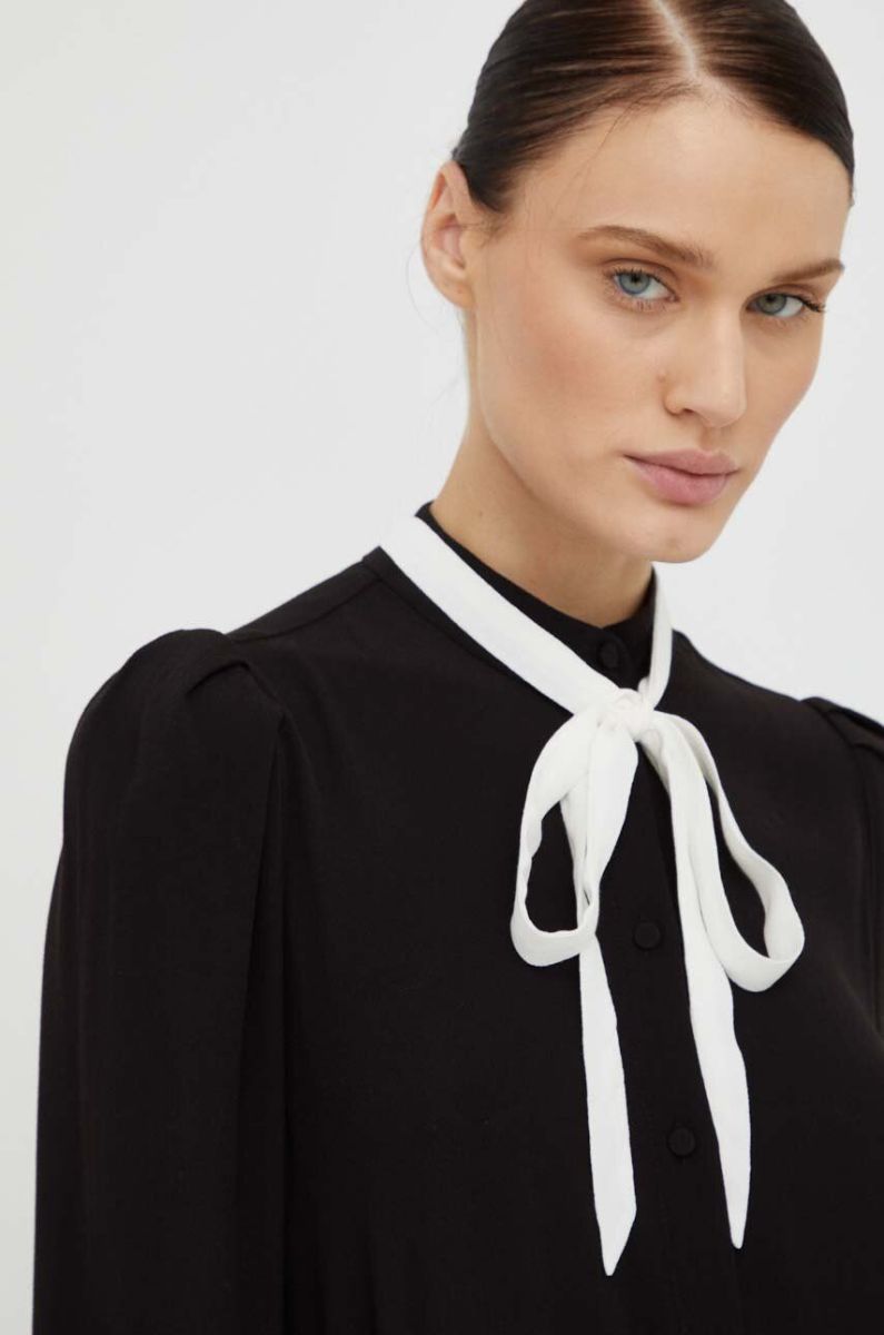 Сорочка Bruuns Bazaar жіноча колір чорний regular зі стійкою